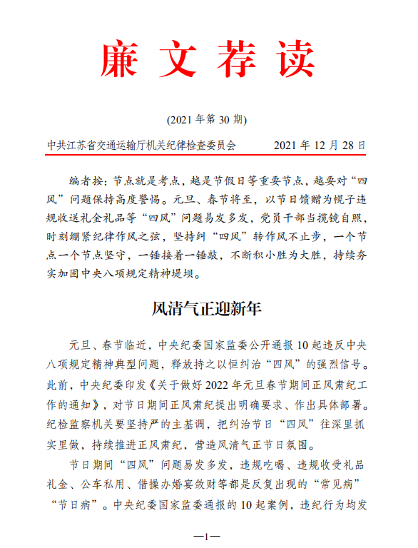 2021年廉文荐读第30期——风清气正迎新年