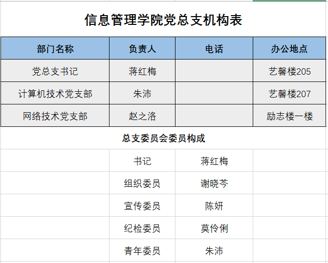 信息管理学院组织机构设置情况